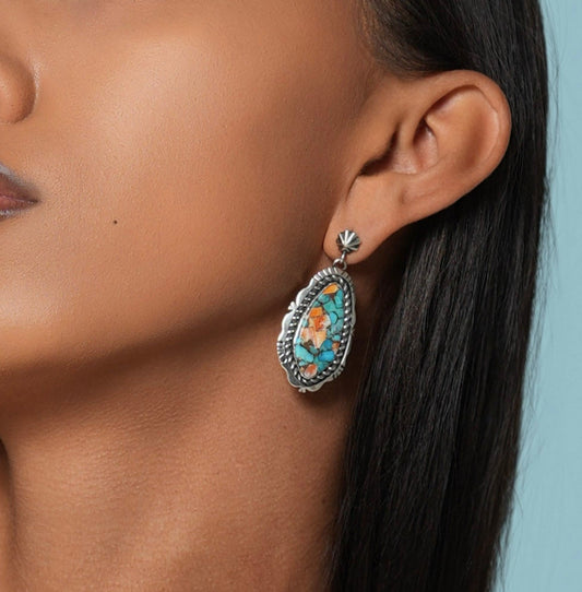 Turquoise & Spiny Oyster Earrings - Post back dangles