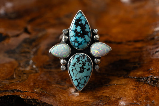 Opal and Turquoise Four-Stone Ring - Size 7 3/4