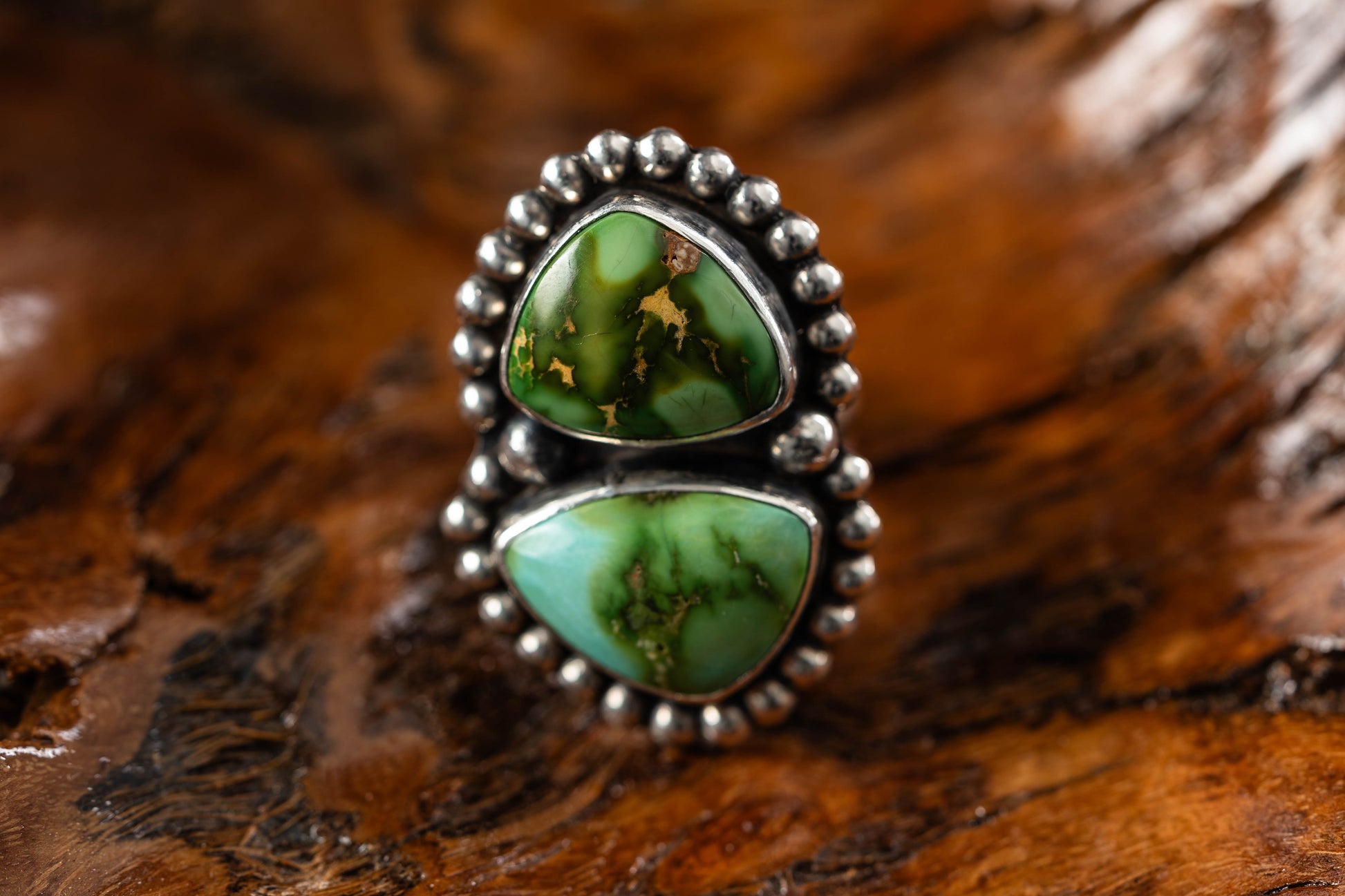Unique Appeal: The natural variations in green turquoise make each ring one-of-a-kind.