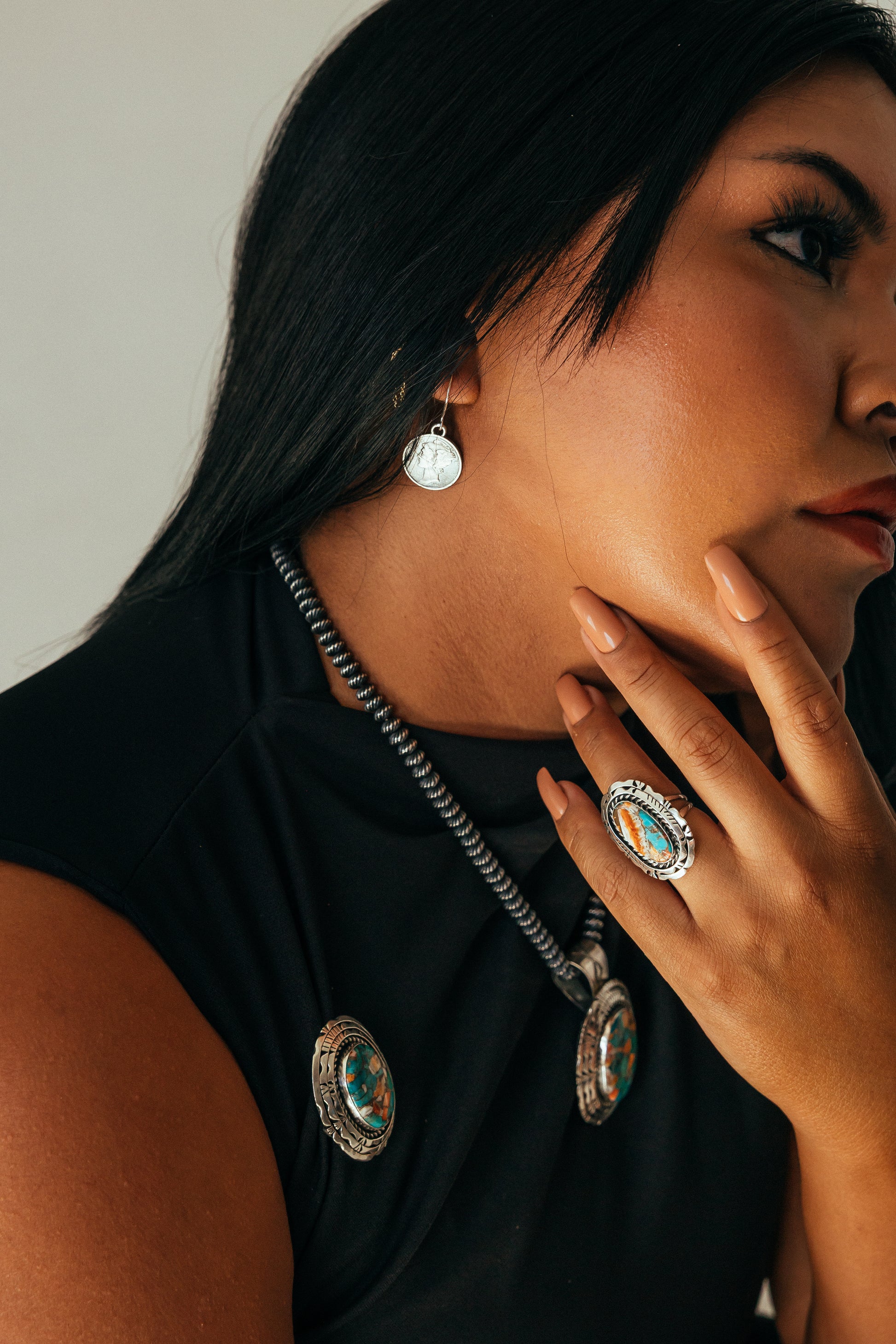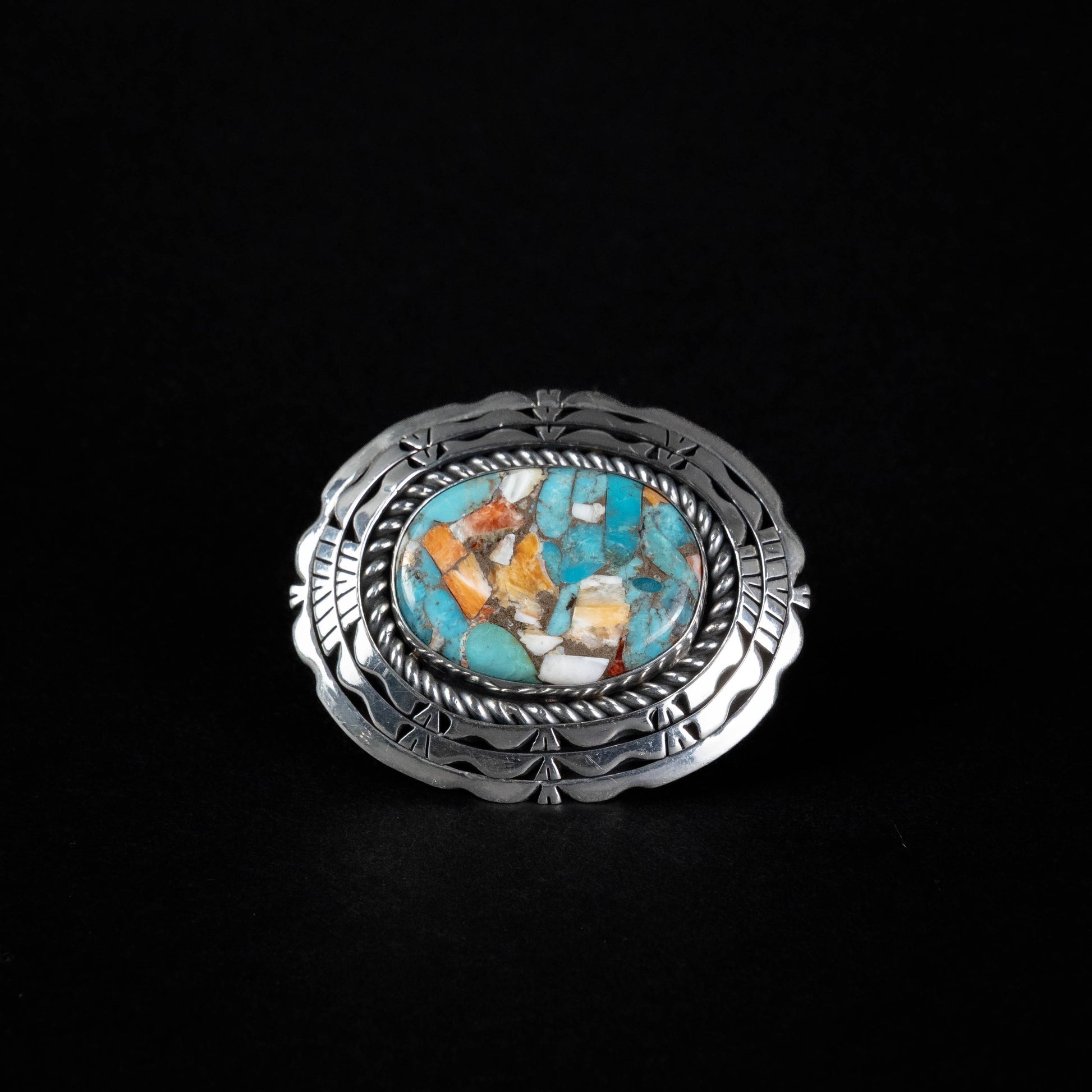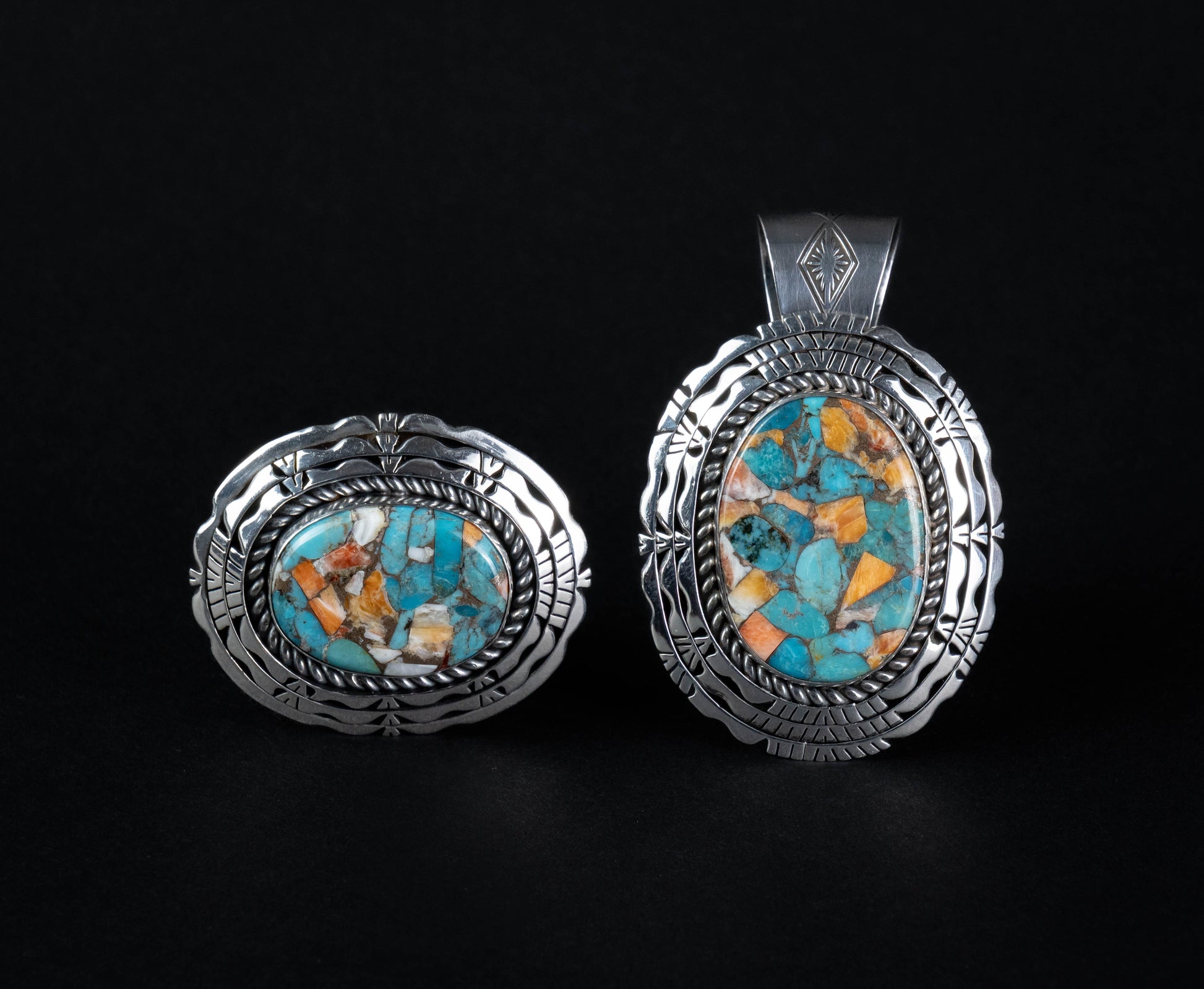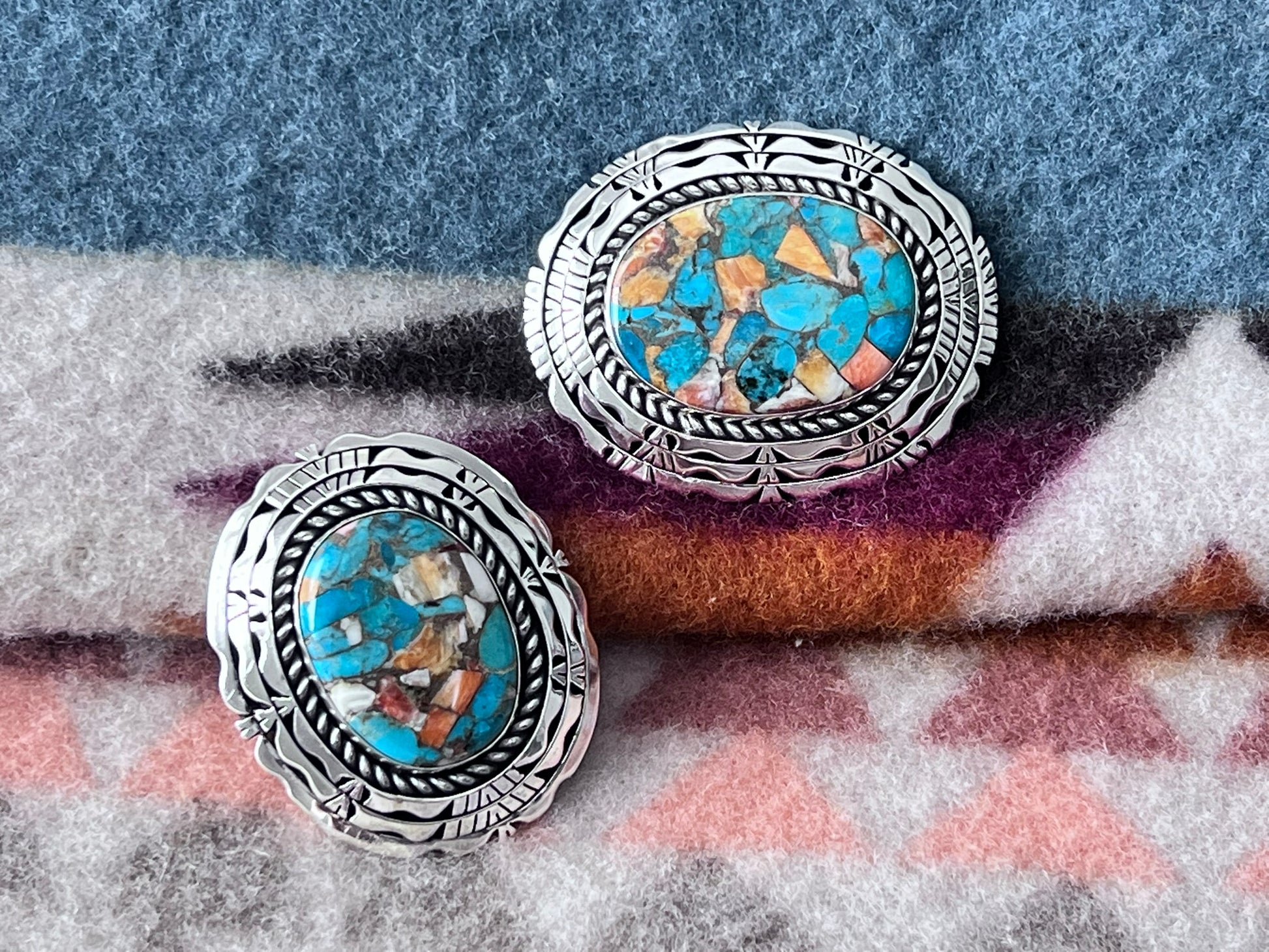 - Materials: Sterling silver, composite inlay (turquoise, spiny oyster, copper)