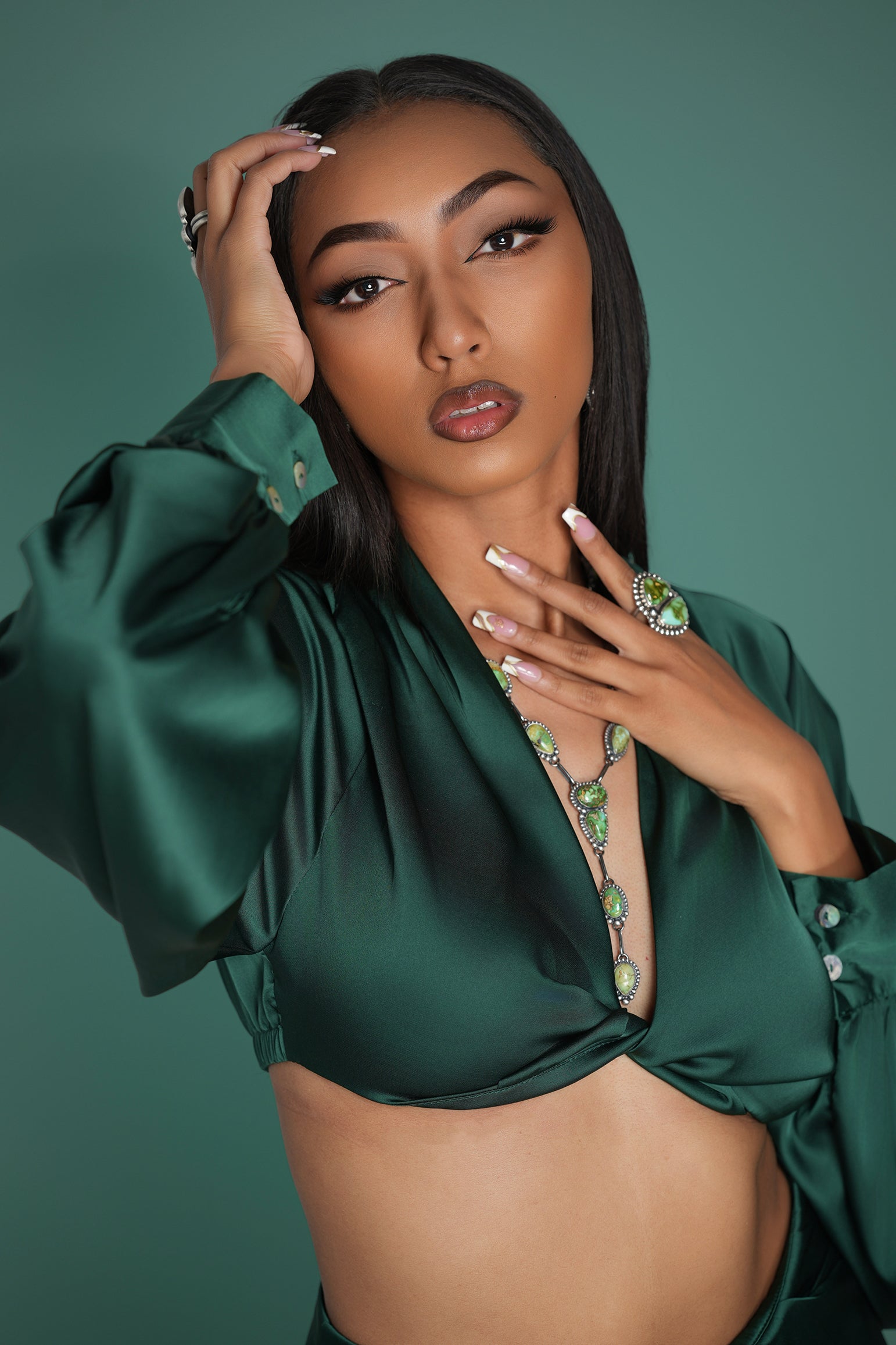 This necklace balances weight and movement. I chose Sonoran turquoise for its tonal variety and cut each bezel by hand to follow its form. No stamping and minimal embellishment to keep the stones the focal point.